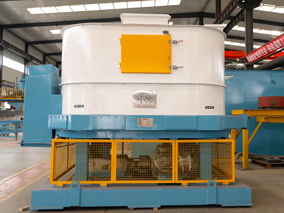 当冷却系统开始工作时,控制系统首先检测旧砂温度和湿度,并据此确定出加水量,旧砂进入盘内,在搅拌器和风力的带动下,旧砂在水平和垂直两个方向立体运动。与此同时,加水系统将确定的加水量均匀地喷撒在旧砂中水份蒸发带走大量的热,蒸发的热汽被迅速抽出,进入除尘系统,在冷却器揽拌冷却的过程中,系统安装的温度、湿度检测装置,连续检测监控旧砂温度、湿度的变化、同时,连续检测搅拌电机的工作电流来调整出砂门的开度以保持冷却器内砂量的稳定,通过检测出砂温度及水份,反馈加水控制系统,调整加水量,保证出砂的温度控制在45度(夏天环境温度+10度)以内,并精确控制水份在2±3%。
