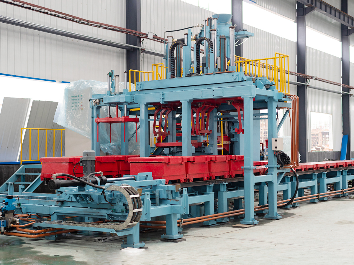 随着国内外各行业的发展,对铸件的需求量越来越大,精度要求越来越高。而传统手工方式已经不能满足需求,自动化生产成为行业发展趋势。但国内水平分型脱箱造型线较国外仍有相当大的差距,主要表现在精度差、效率低、容易错箱、运行不稳定等问题。为了满足市场的需求,我公司借鉴国外先进的设计、理念和制造经验研制出的水平分型脱箱造型线很好的解决了这一系列问题。我公司产品具有高配置,高效率和高精度三高特点,得到了用户一致好评。我公司研制并投向使用的YHH176带下芯工位水平线,砂型尺寸700 X 600/180-250(mm),适合中小铸件生产,适用于通用机械、管件、汽车、机床、铁路、电力、液压机械、缝纫机、工程机械等中小铸件的生产。为方便下芯,该造型机采用1个上箱,2个下箱,其中1个下箱造型完毕后可以转出下芯而不影响造型速度,可用于复杂型腔的铸件生产。该造型机合模精度误差低于0.3mm,远高于手工合模精度,造型效率为100型/h。我公司还可以根据客户要求定制各种砂型尺寸的造型线。截止到2020年5月相继研制了YHH288(砂型尺寸800 X 800/180-250(mm))双工位水平分型脱箱造型线和配套水平线的JQ10全自动三轴联动倾转式浇注机。YHH288造型线进一步提高了砂型尺寸和造型效率,该造型机造型每小时可达150型以上。JQ10全自动三轴联动倾转式浇注机作为全自动造型线不可或缺的配套设备,与人工浇注相比,能显著改善工人的操作环境,提高生产效率和产品的成型率。